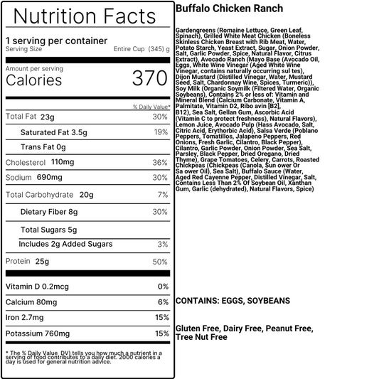 With just the right amount of hot kick quelled by our all-natural / dairy-free Avocado Ranch, the Buffalo Chicken Ranch Gardencup packs in all the fresh-veggie accouterments you'd expect in a gameday wing spread, with the guilt-free crunch of roasted chickpeas.