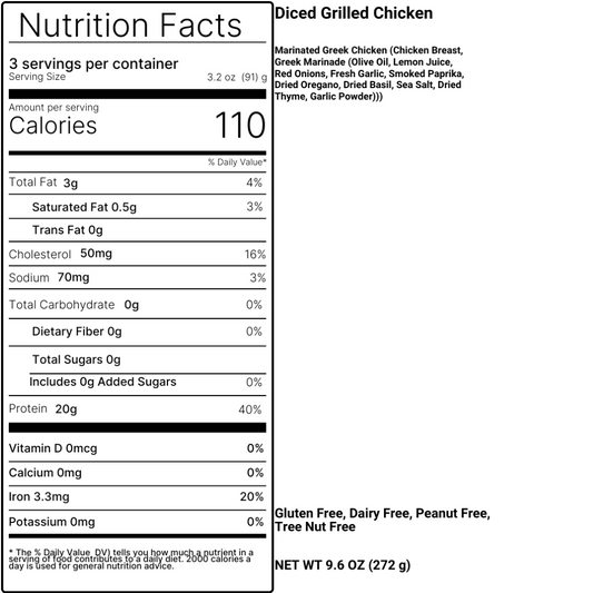 Grilled, seasoned, READY. TO. EAT. All the fresh diced chicken you need for the week in one easy, resealable cup.