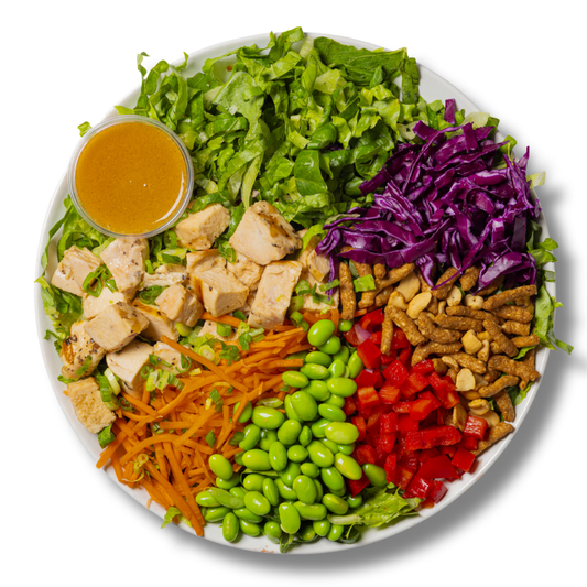 Escape to the sun-soaked shores of the Mediterranean with our Greek Chicken Kabob Bowl! This cup features a crave-worthy combo of grilled herb-marinated chicken, fluffy basmati rice, crisp garden greens, juicy tomatoes, crunchy cukes, roasted peppers, pickled onions, Kalamata olives, and a creamy housemade tzatziki that ties it all together with cool, tangy perfection. Topped with crumbled feta and packing 30g of protein, this bowl brings bold Greek flavor and fresh, feel-good fuel with zero prep required. Gluten-free, peanut-free, and downright irresistible.