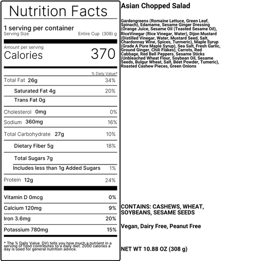 With notes of ginger, sesame, and peanut, this one has a complex, Asian-fusion flavor profile unlike any other Gardencup. If you like far east cuisine and lots of crunchies, our Asian Chopped salad will not disappoint.