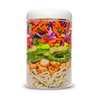 Soba noodles Roasted garlic butter shrimp Shredded carrots, cabbage & bell peppers Green onion & edamame English cucumber & mango Creamy Thai peanut sauce Thai chili drizzle Fresh herbs & spices