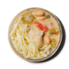 Our White Chicken Chili is comfort in a cup — tender shredded chicken breast, creamy cannellini beans, and a zesty blend of hatch green chilies, jalapeños, and tomatillos, all simmered in our house-made chicken bouillon. Finished with a swirl of sour cream and melty mozzarella pearls, every spoonful is rich, creamy, and just the right amount of spicy.